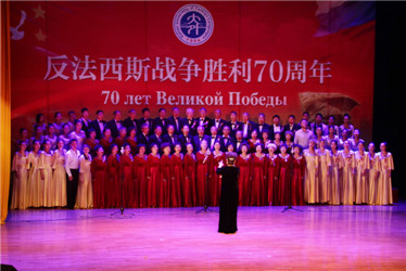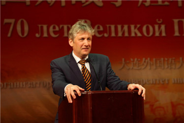 The Commemoration of the 70th Anniversary of Victory of the Anti-Fascism War was held at the student center of DUFL on May 10th. Consul-General of Russia in Shenyang, Mr. Bedford, President Sun Yuhua of DUFL and other leaders of the university attended the event.