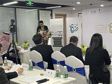 On December 18th, in order to celebrate the 10th World Arabic Day, the Cultural Affairs Department of the Embassy of the Kingdom of Saudi Arabia in China held a World Arabic Day Academic Exchange Chinese Meeting in Beijing with the theme of "Bridges of Arabic-Civilization Exchange". Professor Luo Lin, Dean of the Institute of National and Regional Studies and Dean of the Middle East Institute of Beijing Language and Culture University, and Arabic education experts from many universities and research institutes in China attended the meeting. Teacher Dong Qi, majoring in Arabic at the School of Asian and African Languages of our university, delivered a speech entitled "The Role of Arabic in Civilization Alignment and Some Thoughts on Promoting Sino-Arab Exchanges" at the meeting.