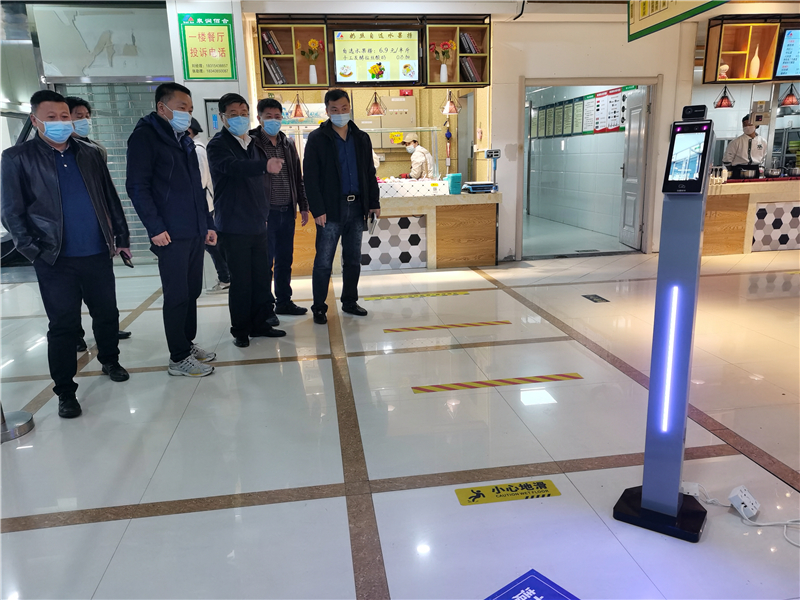 Wang Weichen, secretary of the Party Committee, reported on the rectification of the problems pointed out by the inspection on March 20 and the management of the campus network. The supervision team also inspected the school canteen, library, teaching building, school isolation place, etc., and conducted random interviews with school leaders, teachers and students, and learned in detail about the temperature measurement of important places in the school, the setting of one-meter line, disinfectant, mask recycling bins, and the supply of catering and campus closure during the campus closure period, and further guided the key parts and key links of campus epidemic prevention and control.