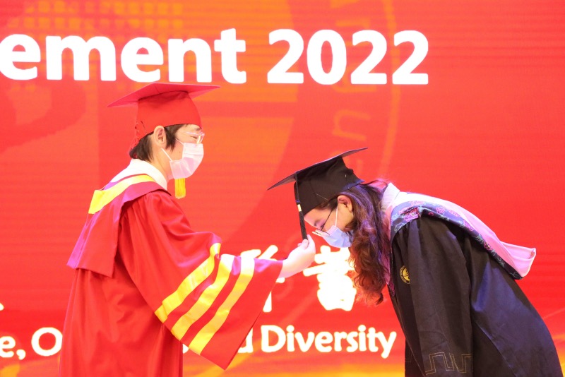 Following the graduation ceremony, the 2022 degree conferment ceremony was held. The degree awarding decision was read out by the head of the Graduate Office and the Academic Affairs Office. Professor Liu Hong, director of the school's degree evaluation committee and president, awarded each graduate with a degree, and awarded an honorary certificate to the outstanding bachelor's degree winner. (Wang Jiaming)