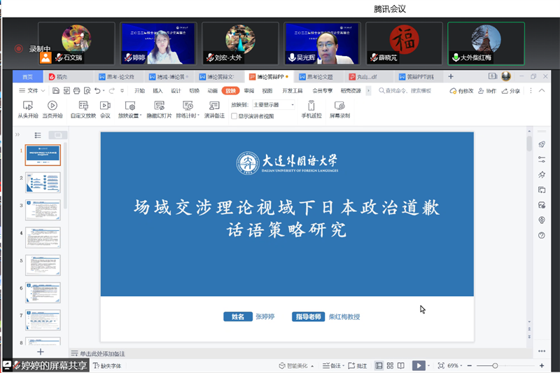 On July 24th, the doctoral training program of "Northeast Asia Diplomatic and Foreign Affairs High-end Talents" of our university held a doctoral dissertation defense meeting through the Tencent conference platform, and doctoral students Lu Lin and Zhang Tingting successfully completed the doctoral dissertation defense.