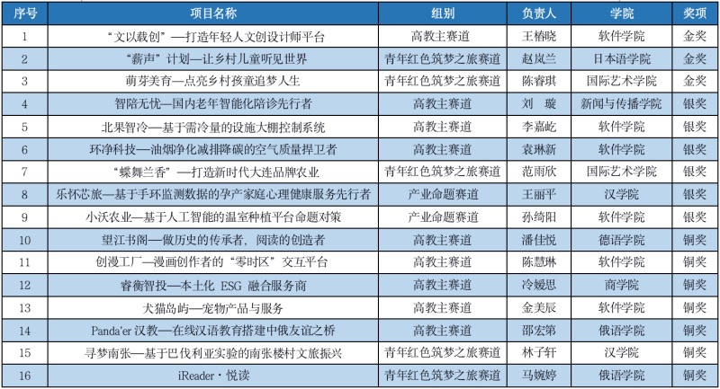 After fair, impartial and open selection in the school competition, 16 project teams stood out and were shortlisted for the provincial competition, including 9 main track projects of higher education, 5 track projects of "Youth Red Dream Building Tour", and 2 projects of industrial proposition track. Through the online review of the competition expert group, 6 projects of our school were successfully shortlisted for the provincial competition finals. After fierce competition, the "Wen Yi Zai Chuang" of the team of Wang Chunxiao of the Software Academy - to create the first platform for young cultural and creative designers, the "salary voice" plan of the Zhao Lanlan team of the Japanese Language Institute - let rural children hear the world, the "budding beauty education" of the team of Chen Ruiqi of the International Academy of Arts - lighting up the dreams of rural children won the gold award, and Ning Chuanfeng and Li Shaohua won the title of excellent guidance teacher.
