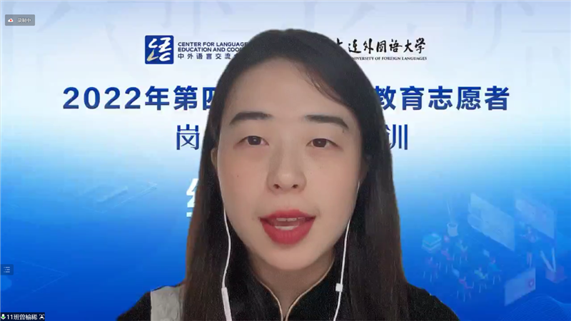 Yu Xiaosong from Shanghai Overseas Chinese University and Zeng Yuxi from Southeast University spoke as representatives of the students. First of all, they expressed their gratitude to the Chinese and foreign language exchange and cooperation center of the Ministry of Education, Dalian University of Foreign Languages and the platform of the Chinese Alliance, and said that thanks to the meticulous organization of Dawai, the online training achieved good teaching results, and the trainees gained progress in professional knowledge and teaching skills. In addition, the two trainees look forward to their future work and life abroad, and they will always uphold their ideals and beliefs, carry forward Chinese culture, and enhance understanding and exchanges among peoples of all countries.