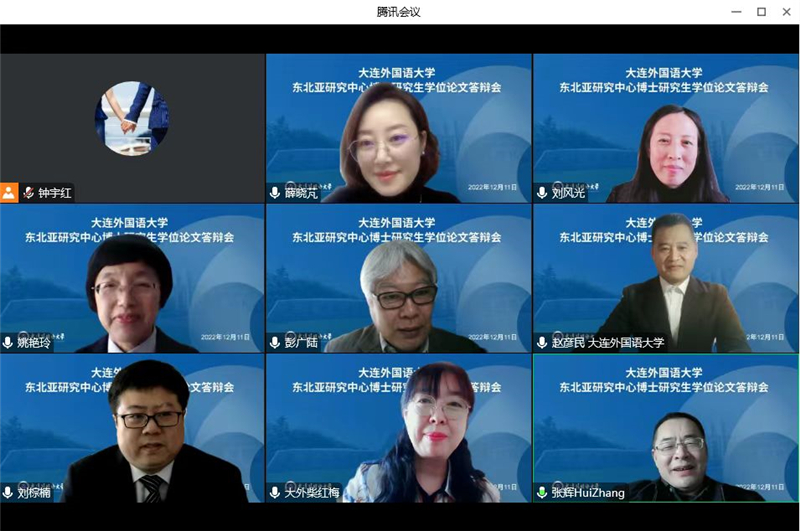 From December 11th to 16 th, the Doctoral training program of "High-end Talents of Diplomacy and Foreign Affairs in Northeast Asia" of our university held the doctoral dissertation defense meeting of two doctoral students through remote video. After the personal research work introduction, the judges' questions, the students' answers, and the discussion of the defense committee, the two doctoral students' graduation thesis has reached the level of doctoral dissertation, and successfully passed the thesis defense. The defense committee unanimously recommended that the university Academic Degree Assessment committee grant the two doctoral students the degree of Doctor of Literature.