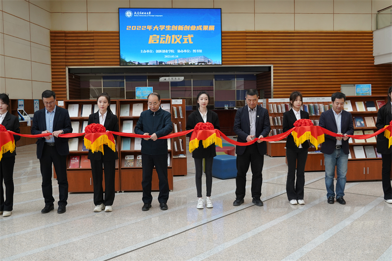 In order to show the demeanor of Dawai students, create a strong campus atmosphere for teachers and students to participate in innovation and entrepreneurship together, and show the outstanding achievements of our university in deepening the reform of innovation and entrepreneurship education since the "14th Five-Year Plan", at noon on March 16, the 2022 College Students' Innovation and Entrepreneurship Achievements Exhibition hosted by the School of Innovation and Entrepreneurship and co-organized by the library kicked off in the lobby on the first floor of the library. Vice President Chang Junyue, nearly 100 people, including the Academic Affairs Office, the Graduate Affairs Office, the Youth League Committee, the heads of secondary colleges, and representatives of teachers and students, attended the launching ceremony.