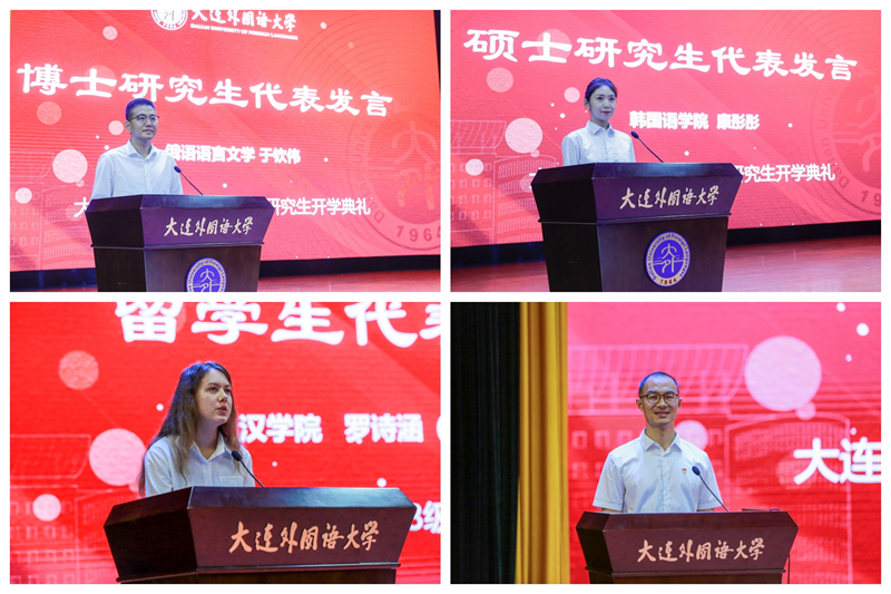 Kang Tongtong, the Korean translation major of the Korean Language Institute, spoke on behalf of the master students. She said that she will uphold the spirit of the school motto of "embracing virtue and culture", closely link personal aspirations and life values with the needs of the country, and actively participate in the great cause of national rejuvenation.