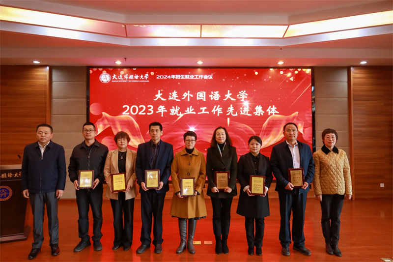 At the meeting, Vice President Zhang Guoqiang first read the Notice on the Announcement of the 2023 Liaoning Provincial University Graduates Employment Probation Demonstration Unit Identification List, Dalian University of Foreign Languages 2023 Employment advanced collective, advanced individual list, followed by the award ceremony, Secretary Wang Weicchen, President Liu Hong for the 2023 employment advanced collective award. Liu Qian from the School of Japanese Language, Guan Ping from the School of Korean Language, as representatives of advanced collectives, Liu Xiaoliang from the School of Software, and Song Lili from the School of Journalism and Communication shared experiences on behalf of advanced individuals.
