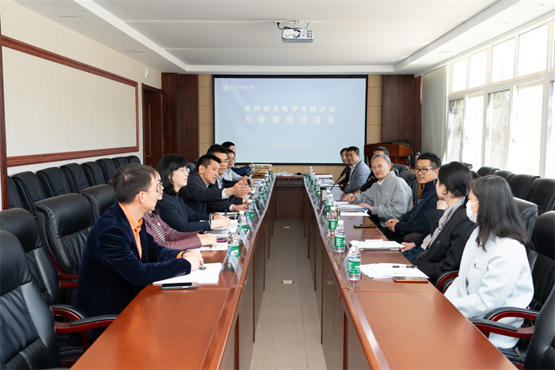 On the afternoon of April 25, the expert opinion exchange meeting of our university's undergraduate education teaching audit and evaluation was held in the lecture hall of the library. All members of the review and evaluation expert group, Song Shengyong, deputy director and deputy general Superintendent of the Education Supervision Office of Liaoning Provincial Government, project administrator and secretary, all school leaders, leading cadres at or above the deputy department level, director of the undergraduate teaching and research Office, teaching secretary, teacher representatives and student representatives attended the meeting. The meeting was chaired by Professor Cao Deming, head of the Review and Evaluation Expert Group of the Ministry of Education and former President of Shanghai International Studies University.
