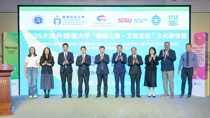 Distinguished attendees included: Kong Feng, Deputy Director of Liaoning Provincial Department of Education; Gao Fei, Deputy Director of Foreign Affairs Office of Liaoning Provincial People's Government; Wang Mingliang, Director of Dalian Overseas Chinese Affairs Office; Jiang Chunmei, Executive Vice President of Dalian People's Association for Friendship with Foreign Countries; Dr. Carl Winston, Dean of SDSU's Payne School of Hospitality & Tourism Management; Ren Tao, Faculty member of HKUST's Center for Language Education; as well as DUFL leadership: Party Secretary Wang Weichen, President Cong Mingcai, Vice President Liu Fengguang, and other senior officials.