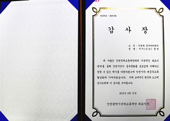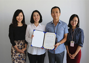 On behalf of Incheon Foundation for International Exchange, Chief Lee Sun-A presented a certificate of appreciation to Mr. Xu Zhi, Dean of DUFL’s Confucius Institute in University of Incheon, for his contribution and efforts in enhancing the friendship and cultural exchange between China and South Korea on Sept. 7th.