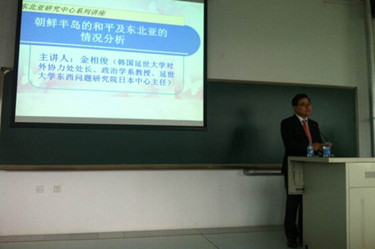After the meeting, Prof. Kim gave a lecture on “Peace of Korean Peninsula and Situation in Northeast Asia.” Over 130 students attended the lecture.