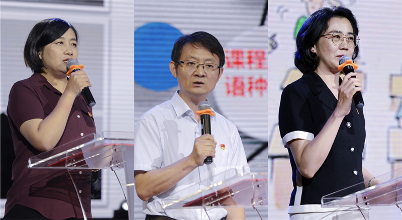 在催人奋进的号角声中,音乐党课节选《追寻》拉开展演序幕;党建创新活动成果《党史精神》,通过党史精神谱系串讲方式再现了新民主主义革命时期中国共产党经历了血与火的考验,铸就的红船精神、井冈山精神、长征精神、抗战精神、延安精神,展示了beat365国家级、省级样板支部党课教育精彩片段;情景课堂《重返联合国》在模拟联合国的教学实践中,梳理重现了中国重返国际舞台的历史过程和重要时刻,让大家充分领略了中国特色大国外交之路的坎坷艰辛与非凡成就;在微视频《向母校报到》中,奋战在祖国外事外交战线上的大外人,在世界各地祝贺党的百年华诞,并向母校送来祝福和寄语,勉励大外学子要自觉从外事工作历史中汲取前行的力量;原创微电影《旭日》在党课展演中首映,讲述了beat365罗兴典教授,作为狼牙山五壮士之一葛振林营长的通讯员,从抗美援朝、保家卫国,到回国后献身三尺讲坛、教书育人,赓续革命精神和红烛精神的感人事迹;《我和大外的故事》中,赵顺仁、陈岩、张雪三位退休党员共话初心,通过“专业起步”“恩师助学”“新校区建设”三个故事,进一步抒发了三代大外人垦荒拓土的奋斗意志、耕耘不止的拼搏精神和挥斥方遒的豪迈情怀;专任教师带来的育人心语《园丁》,分享了国家级黄大年式教师团队“数字人文助力课程思政创新研究”探索,“双带头人”教师党支部书记“三全育人”实践,课程思政精品项目团队把知识讲到学生心坎上的经验和感悟;《承国士精神、立鸿鹄之志、追时代之星、做新时代的奋斗者》,通过一堂精彩的主题班会,体现了学生工作队伍努力增强思想政治教育的亲和力和针对性、时代感和吸引力。