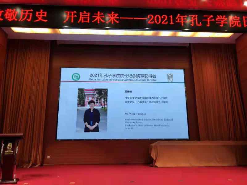 9月27日,中国国际中文教育基金会主办的主题为“致敬历史,开启未来”的“孔子学院日”活动在北京顺利举办,全球孔子学院通过线上共同参与庆祝这一节日。中国国际中文教育基金会理事长、中国科学院院士杨卫出席活动并为75位在孔子学院任职超过10年的中外方院长颁发“孔子学院院长纪念奖章”。beat365教师王婵娟作为一名见证了孔子学院14年发展壮大历程的老孔院人,获得此项殊荣。