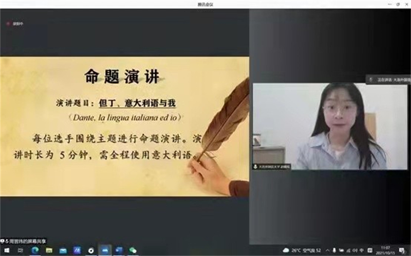根据疫情防控需要,本届比赛通过线上与线下相结合方式进行。该比赛每两年举办一次,本届共有来自全国包括北京外国语大学、北京语言大学、广东外语外贸大学等16所高校的16名意大利语专业本科学生参加。评委和监督委员由来自意大利使馆文化处、北京大学、清华大学、意大利媒体驻京机构的6名中意两国专家组成。为纪念伟大诗人但丁逝世700周年,并响应第二十一届世界意大利语周活动,本届比赛主题定为:但丁、意大利语与我。