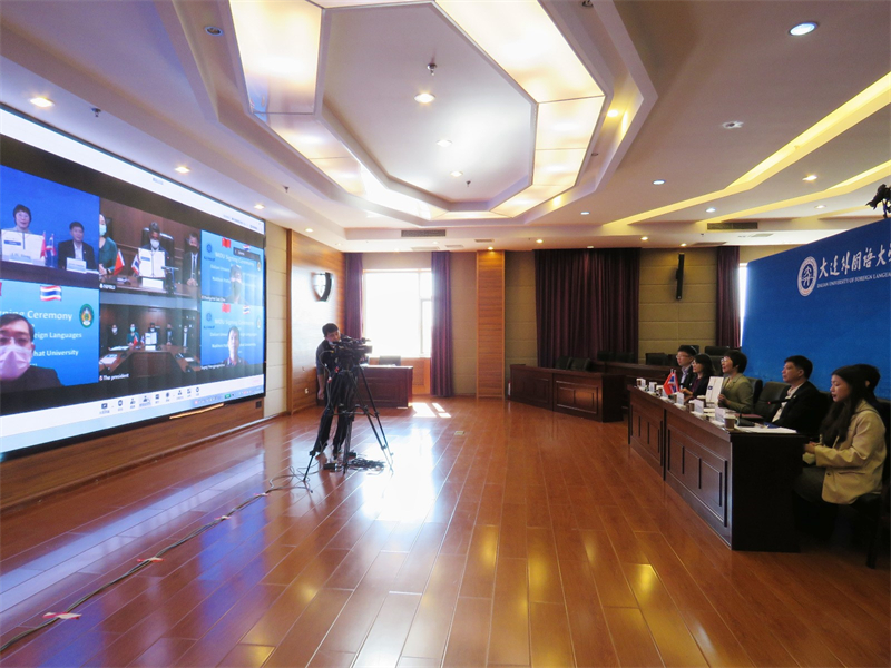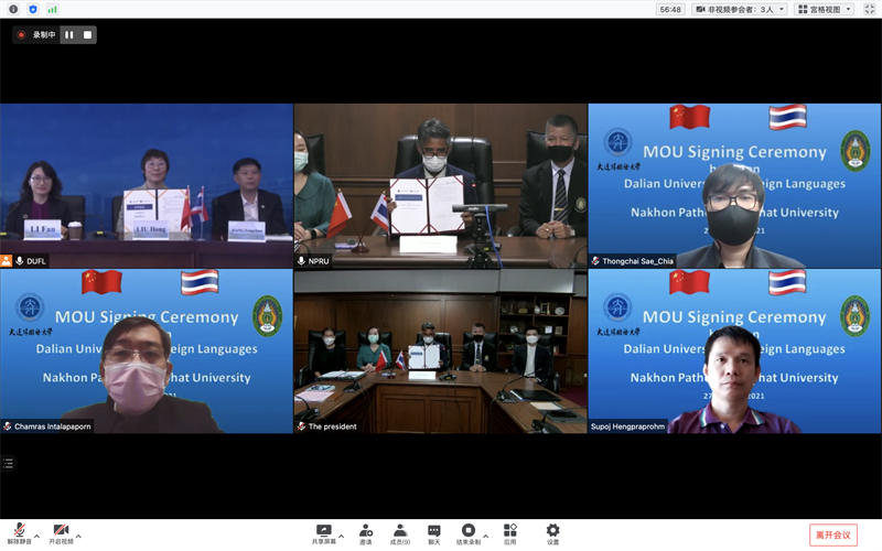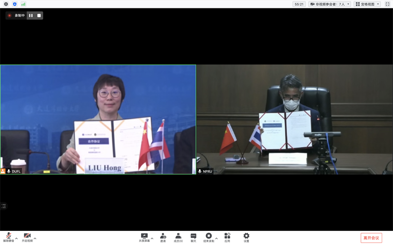 刘宏校长在致辞中表示,非常高兴能与佛统皇家大学开展线上交流并签署合作协议,她向威拉•宾高校长及其工作团队为促成两校合作所做的工作表示感谢。刘校长从建校历史、专业设置及国际化办学特色等方面详细介绍了beat365情况。她表示,beat365开设的专业中涵盖15种外语语种,为响应大连市泰语人才需求,2020年开设了泰语专业,受到了学生与家长的欢迎。beat365国际化特色显著,已与海外230余所高校和机构建立了多领域多层次的交流与合作关系。疫情之前,每年接收来自70多个国家和地区的来华留学生1500余人次,泰语专业的开设进一步促进了中泰两国学生的交流。刘校长对两校合作充满期待,并诚挚邀请佛统皇家大学在疫情平稳后到访beat365开展线下交流。