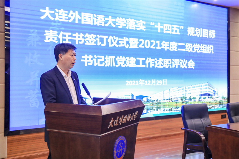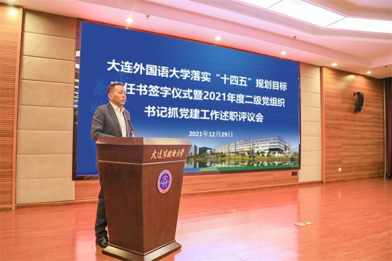 日本语学院院长于飞代表教学单位做了表态发言,表达了努力完成“十四五”指标任务的信心和决心。