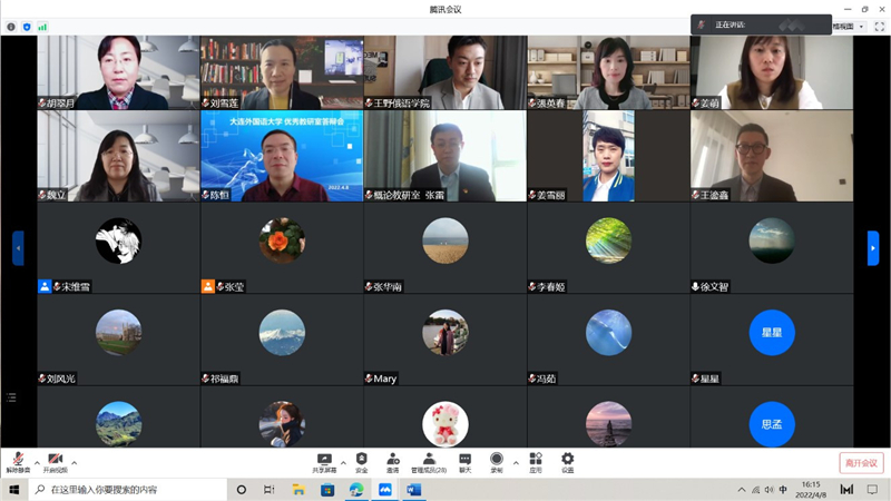 线上答辩环节,邀请校级教学督导委员张雪、柳玉刚,科研处处长刘风光,教务处副处长迟爽,德语学院副院长张华南,公共外语教研部副主任祁福鼎担任评委,评审环节由科研处处长刘风光主持。现场答辩面向全校教师开放,各教学单位领导、教研室主任、教师等80余人参加了线上观摩。