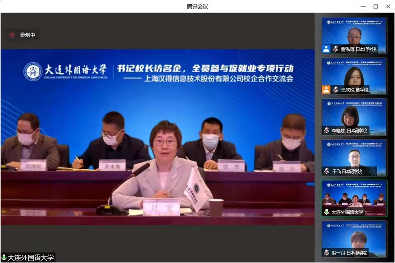 为贯彻落实教育部、省教育厅关于推进高校就业工作的决策部署,4月19日、20日,校长刘宏带队分别与上海汉得信息技术股份有限公司、埃森哲信息技术(大连)有限公司、信华信技术股份有限公司开展校企合作线上交流会。校企双方就毕业生就业情况、企业需求、人才培养、校企合作模式等问题进行了深入交流。这是学校为落实教育部就业工作“一把手”工程,自三月以来举办“书记校长访名企,全员参与促就业”专项行动的深入和继续。