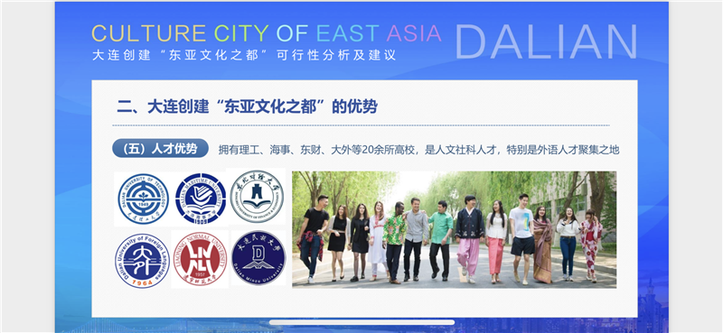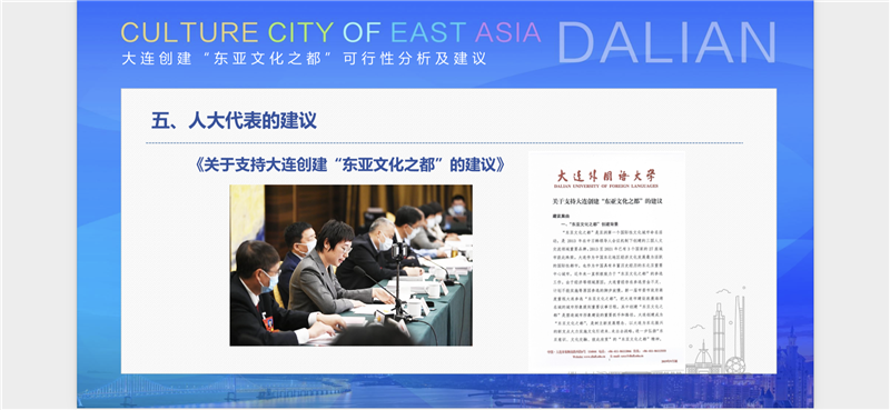 今年,全国人大代表、beat365校长刘宏向十三届全国人大五次会议提交建议,希望在国家层面上支持大连建设“东亚文化之都”。该建议反馈至大连市人民政府后,大连市文化和旅游局与beat365开始商议共建“东亚文化研究中心”相关事宜,助力“东亚文化之都”城市品牌建设。在大连建设一线国际文化传播城市高峰论坛上,刘宏校长作题为“大连创建‘东亚文化之都’可行性分析及建议”报告。她指出,大连创建“东亚文化之都”具有黄金纬度带的区位优势、得天独厚的历史文化优势、毗邻日韩等国的地缘优势、既有中日韩文化交流活动的平台优势和人文社科特别是外语人才聚集的人才优势。“东亚文化之都”建设是塑造城市形象建设的重要抓手,是打造面向东北亚对外开放新前沿的题中之义,是推动大连成为东北亚区域双循环主导城市的现实需要,是面向东北亚地区提升国际传播能力和国际话语权的有效路径,是落实习近平总书记关于把大连建设成为两个“先导区”讲话精神的具体举措。通过“东亚文化之都”的创建,有助于将大连打造成为更高水平的对外开放平台和文化交流互鉴新高地。刘宏校长表示,“东亚文化研究中心”将依托beat365正版唯一官网必一国际关系、日本学、韩国学专家团队和科研力量,深入挖掘大连地区的历史与文化底蕴,从国际关系、历史学、社会学、民俗学、人类学等不同学科角度精准实施“东亚文化之都”建设专项课题研究和发展规划设计,逐步建设成为国内高水平文旅研究智库,为深入开展市校合作,推动大连市文化和旅游业高质量发展和对外交流拓展提供更加丰富的学科资源和专业服务。