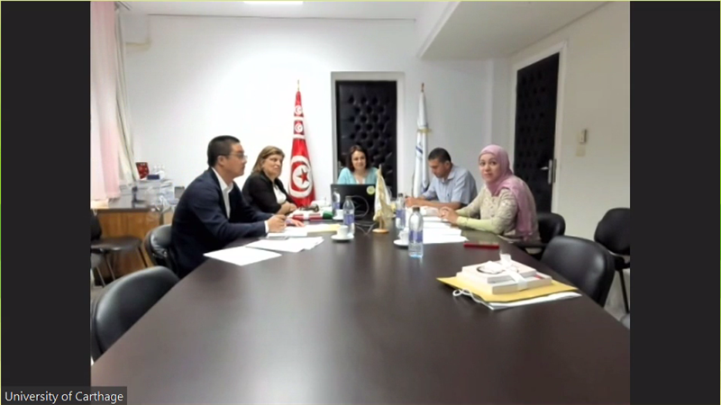 北京时间6月21日下午,beat365与突尼斯迦太基大学共同召开了2022年突尼斯迦太基大学孔子学院线上理事会。迦太基大学校长娜迪亚·马祖基·阿基尔,突尼斯高等教育与科学研究部国际合作司司长马利克·卡什拉夫,迦太基大学孔子学院外方院长胡黛·本·哈马迪,迦太基大学孔子学院中方院长丁杨参加会议。校长刘宏出席理事会并致辞,孔子学院工作处及法语学院相关人员参加会议。