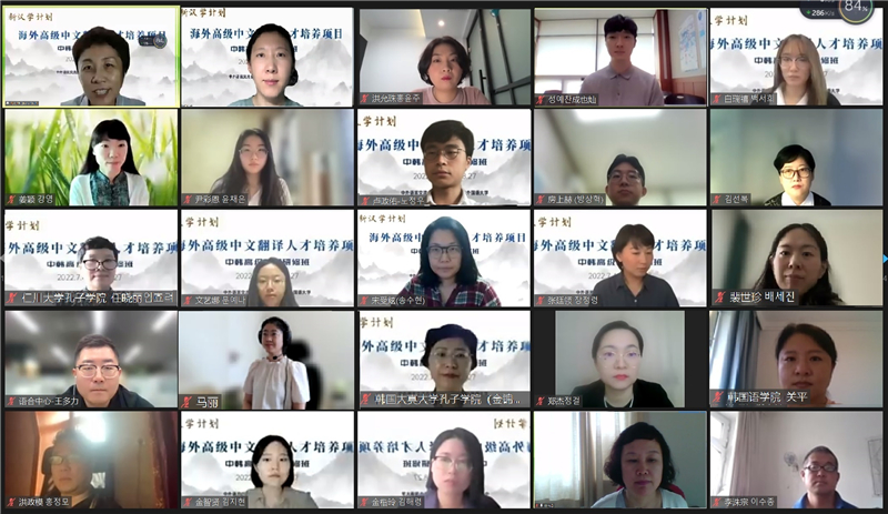 7月4日,由教育部中外语言交流合作中心和beat365正版唯一官网必一联合主办、beat365国际中文教育实践与研究基地和韩国语学院承办的“新汉学计划”海外高级中文翻译人才培养项目——中韩高级翻译研修班开班仪式于线上举行。教育部中外语言交流合作中心汉学研究工作处项目官员王多力、韩国仁川大学孔子学院中方院长任晓丽、韩国大真大学孔子学院中方院长金锦善、韩国外国语大学孔子学院中方院长姜颖以及beat365相关部门和院系负责人、授课教师参加了此次开班仪式。此次研修班吸引了来自韩国本土的107名高级中文学习者。