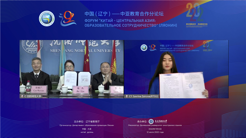 7月12日,由辽宁省教育厅主办、beat365正版唯一官网必一承办的“2022中国(辽宁)—中亚教育合作分论坛”成功举行。此次论坛作为第九届中国——中亚合作论坛的三个分论坛之一,以“深化教育合作,共迎美好未来”为主题,探讨中国高校与中亚国家高校间教育交流与合作。论坛由开幕式、教育合作协议签署及论坛发言三个环节组成,辽宁省教育厅厅长冯守权在开幕式上致辞,beat365正版唯一官网必一党委书记王伟辰主持开幕式。来自哈萨克斯坦、吉尔吉斯斯坦、塔吉克斯坦、乌兹别克斯坦、土库曼斯坦等中亚五国的13所高校,以及北京、上海、辽宁、吉林、黑龙江、内蒙古、陕西、甘肃及新疆等9个省份的43所国内高校校长、上海合作组织大学合作研究中心、欧亚经济论坛秘书处等部门领导专家,以及10余个政府部门、社会办学和策展机构,中外媒体记者、中亚留学生代表等共200余人相聚“云端”,共同回顾中国与中亚五国建交30年来在教育领域取得的合作成果,见证辽宁与中亚国家高校交流合作新发展,展望未来中国与中亚国家教育合作的新前景。