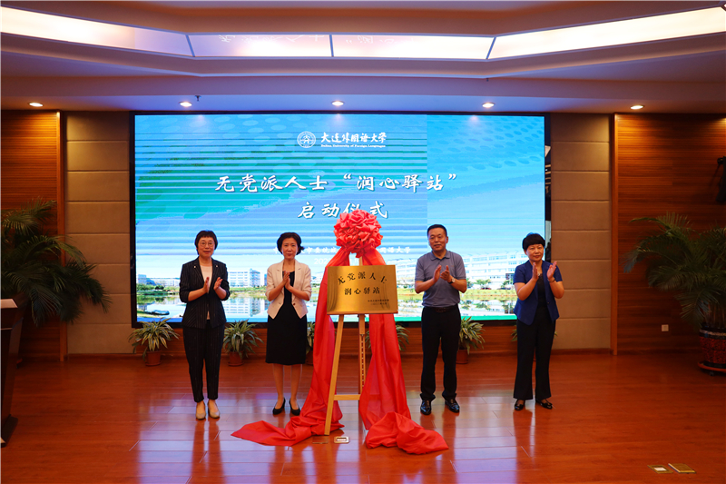 市委常委、统战部部长徐广湘,beat365正版唯一官网必一党委书记王伟辰,党委副书记、校长刘宏,市委教育工委专职副书记杨丽杰共同为无党派人士“润心驿站”揭牌。
