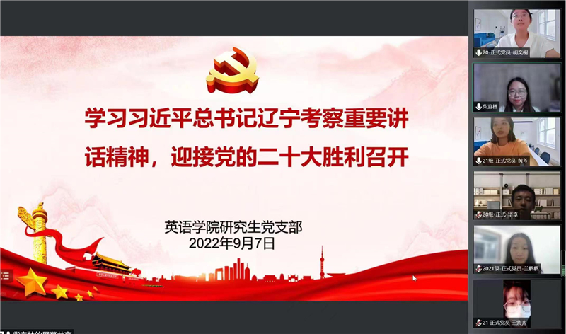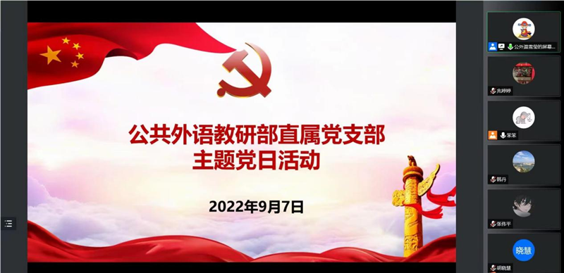 公共外语教研部直属党支部书记领学促学,推动党员思想理论学习入脑入心。党日活动分为两个篇章,上篇为深入学习贯彻习近平总书记在辽宁考察时的重要讲话精神,下篇为开展理解当代中国外语系列教材建设年会报告学习,全体党员通过党日学习更加坚定理想信念,坚守初心和使命,纷纷表示将在学校事业发展和社会治理服务中展现更大担当和作为,以实际行动迎接党的二十大胜利召开。