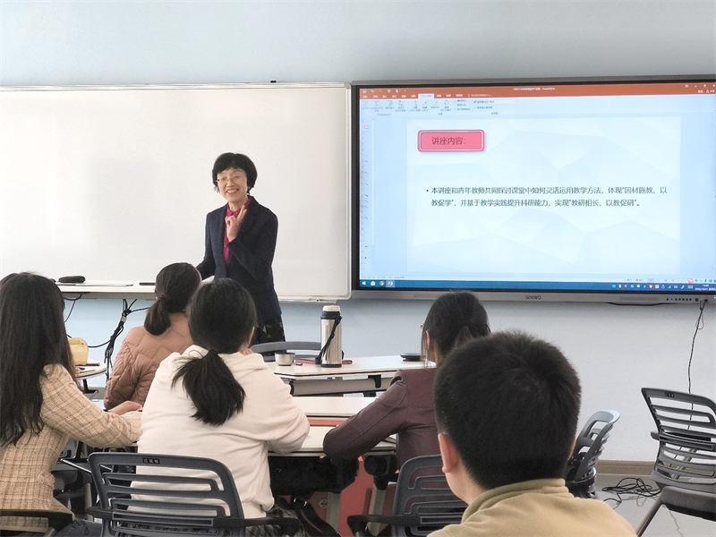 活动中,姚艳玲教授结合自己30多年的成长历程和教学经验,和青年教师共同探讨课堂中如何灵活运用教学方法,体现“因材施教、以教促学”,并基于教学实践提升科研能力,实现“教研相长、以教促研”。在说课环节,姚教授着重介绍了“教学目标”、“教学方法”、“教学设计”、“学习设计”、“教学手段”、“课程思政”等6个方面内容。建议青年教师要注重教学方法创新,将教学设计融入新理念,积极学习设计多元化教学手段,以达到立德树人的课程思政教学目标。