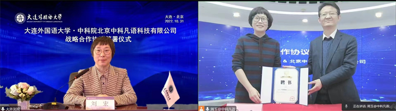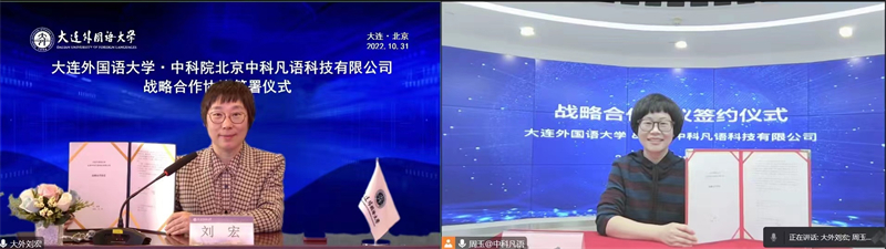 10月31日下午,beat365科研处、研究生处一行赴中科凡语北京总部进行调研交流,beat365校长刘宏与中科凡语董事长周玉在线上就全方位合作事宜达成共识,并签署战略合作协议。