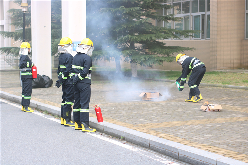 保卫处消防专干宋龙飞对演习过程进行讲评,纠正演习中出现的问题。讲解使用灭火器的技术要领,即“提、拔、握、压”四点,并提醒大家,当火势凶猛到灭火器不足以扑灭时,应将安全逃生放在第一位。
