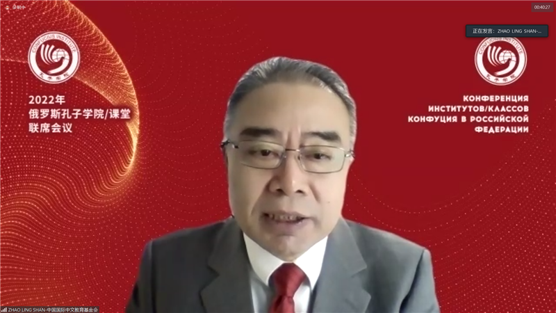 开幕式上,赵灵山副理事长代表中国国际中文教育基金会对会议的召开表示热烈祝贺。他在致辞中高度评价了俄罗斯各孔院在中文教学、文化理解、知识交流、文明互鉴方面做出的巨大贡献,介绍了多家孔院聚焦中文教学主业,发展特色课程项目的办学成果,肯定了孔院在整合当地资源、深化各方合作后,在促发展、亲民心方面取得的一系列成绩。他指出,希望今后俄罗斯各孔子学院共享机遇,共迎挑战,开创俄罗斯孔子学院可持续高质量发展的新局面,基金会也将携手中俄各界伙伴,共同支持孔子学院发展,为促进中俄教育交流与合作贡献力量。