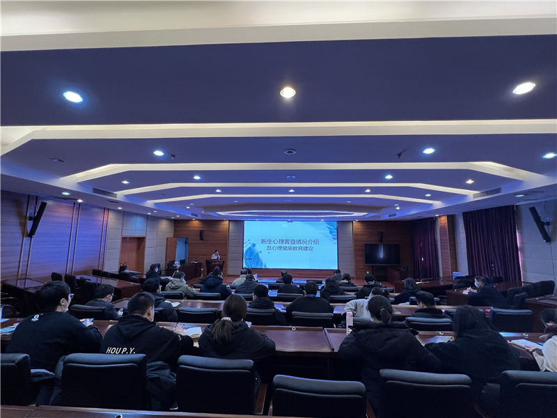 会议由学生处处长姚素文主持。会上,心理健康教育中心主任张秀春作了2022级新生心理普查情况介绍,针对心理健康问题学生,张秀春主任提出在工作时莫急莫慌,对待学生要一视同仁,加强人文关怀和心理疏导的工作建议。
