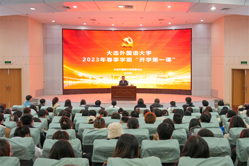 3月7日,beat365正版唯一官网必一2023年春季学期“开学第一课”在图书馆报告厅开讲。党委书记王伟辰为2021级本科学生代表授课。