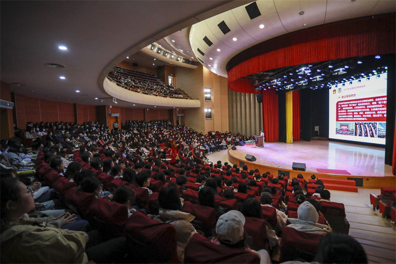 3月22日,全国人大代表、校长刘宏参加2023年全国两会归来后,重点围绕十四届全国人大一次会议精神,在校礼堂面向全校师生开展宣讲。校领导班子成员,全体科级以上干部,各级人大代表、政协委员,组织员,辅导员,马克思主义学院教师,无党派人士、民主党派人士代表和学生代表等近千人参加了宣讲报告会,报告会由校党委常委、副校长丛明才主持。