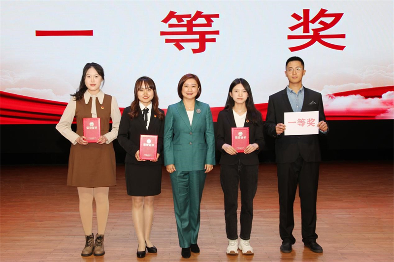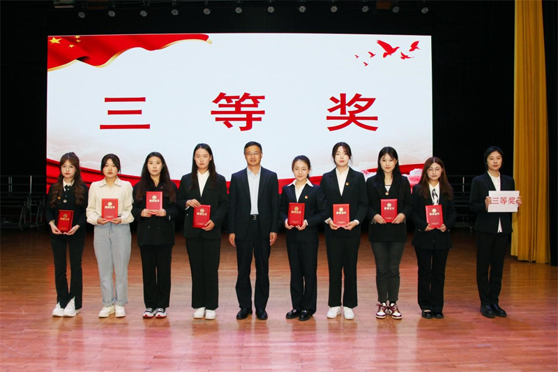 最终马克思主义学院纪颖团队、新闻与传播学院马文杰团队和英语学院郭慧桐团队共3支团队荣获大赛一等奖,另有5支团队获得二等奖,8支团队获得三等奖,现场观摩的领导和嘉宾为获奖选手和优秀指导老师颁奖。(董杨)