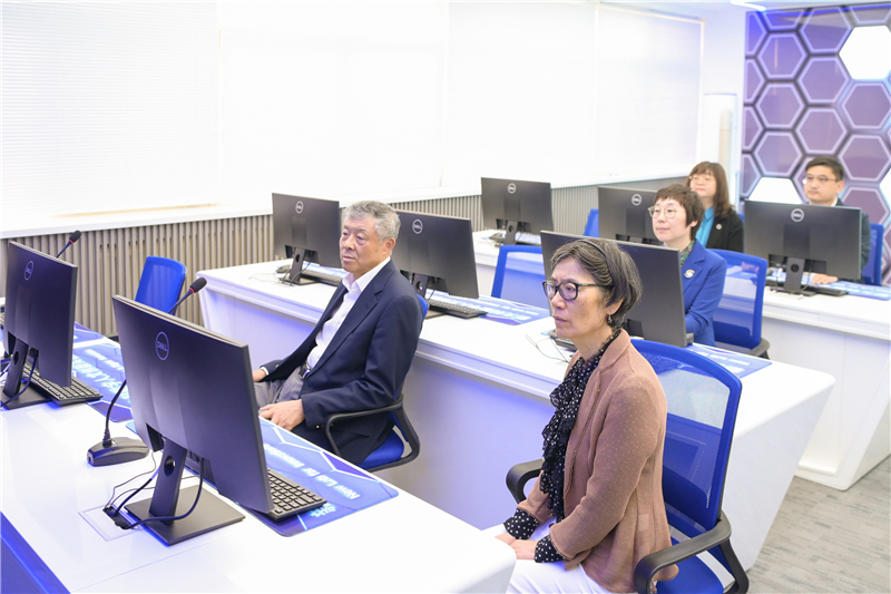 在VR英语实训中心,他进入《口译工作坊》,对英语专业人才培养、教育模式、教学理念、教学条件等给予了高度评价;同时,他还结合自己的学习和工作经历,鼓励同学们要夯实语言基本功,传播好中国声音,讲好中国故事,不断推动中华文化更好地走向世界。