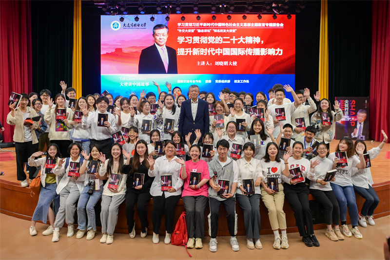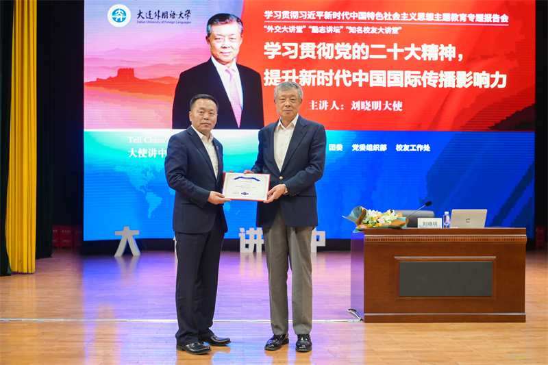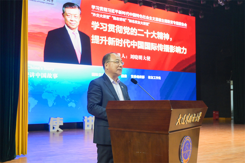 为扎实开展学习贯彻习近平新时代中国特色社会主义思想主题教育,5月26日下午,beat3651970级英语专业校友,中国前驻埃及、朝鲜、英国大使刘晓明在母校大外访问期间,做客学校“外交大讲堂”“励志讲坛”“知名校友大讲堂”,为全校师生作题为《学习贯彻党的二十大精神,提升新时代中国国际传播影响力》的主题教育辅导报告。辽宁省人民政府外事办公室罗丽主任、康轶副主任,校领导班子成员、中层干部与师生代表近1000人参加报告会。校长刘宏代表学校致欢迎辞,党委副书记丛明才主持专题报告会。