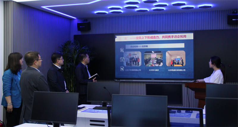 王伟辰书记和调研组成员首先开始“现场看”,通过查看相关就业材料和听取2024届毕业生就业情况汇报演示,了解英语学院毕业生就业情况,并对英语学院毕业生就业工作的开展实施给予充分肯定。