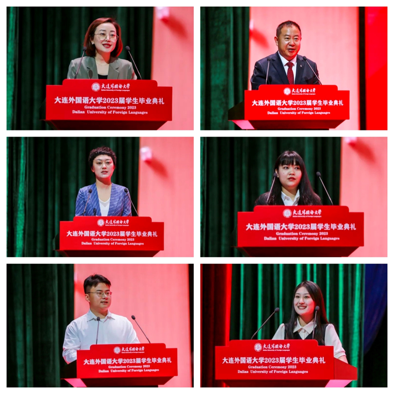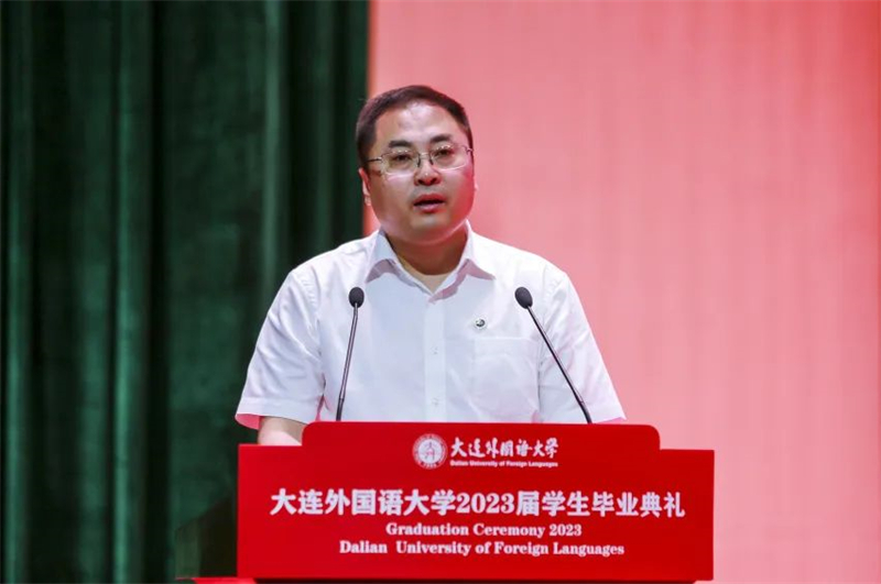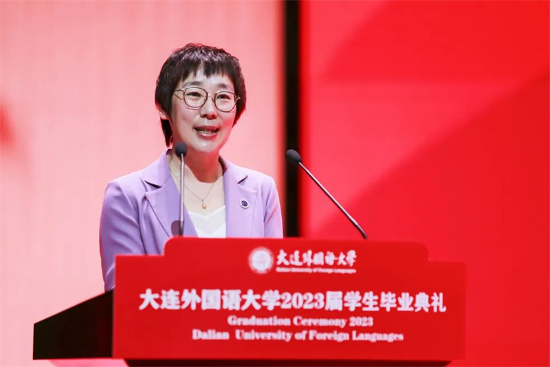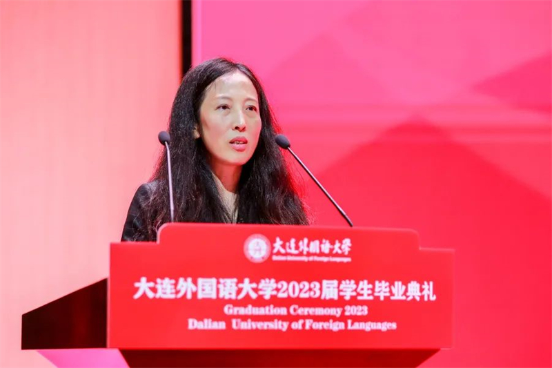 校友代表、日本语学院89届毕业生、大连仓敷橡胶零部件有限公司总经理宋莲红深表对母校的感激之情,为毕业生送上“终身学习,学会选择,心怀感恩”的忠告,希望同学们秉承校训,用开放包容的心态和奋发有为的精神,拥抱挑战,奋楫笃行。