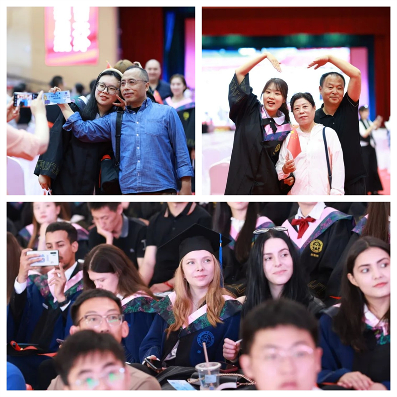毕业生家长代表、欧洲语言学院2019级西班牙语专业本科生裴泓喆母亲阴莉莉女士在发言中表示,她倍感欣慰于看到孩子质的成长与飞跃,不胜感激于学校四年的栽培,并对毕业的孩子们寄予真切的希翼与嘱托。