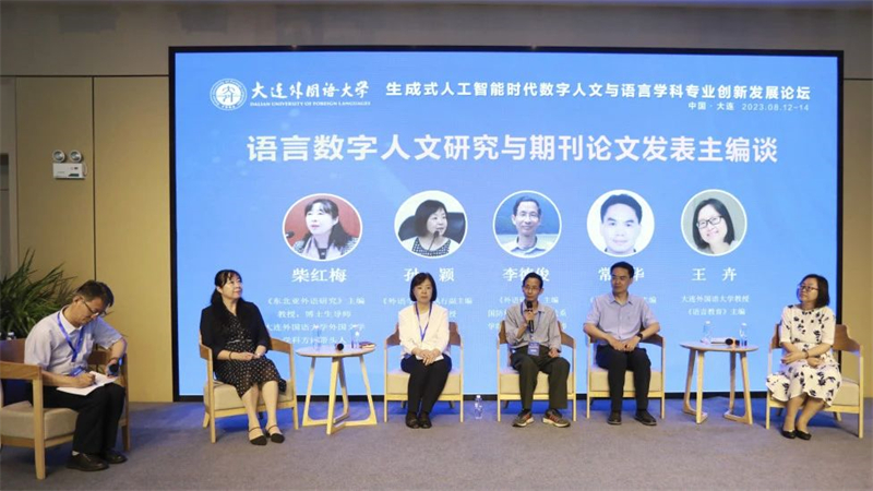 在“语言数字人文研究与期刊论文发表主编谈”环节,李德俊、常少华、孙颖、邓耀臣、柴红梅、王卉六位主编从不同视角交流了语言学领域期刊论文写作的选题、学术规范、科研方法,并介绍了各期刊的办刊特色。主编们指出,各期刊虽侧重点有所不同,但均强调期刊选题与专栏设置的国际性和前沿性,在传统语言理论与应用研究的基础上,珍视当前数字人文与语言研究的新成果,以推动外语学科的创新发展。