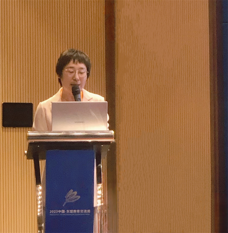 29日下午,刘宏校长参加了2023中国—东盟教育交流周国际中文教育专题研讨会,并作了题为“立足‘一带一路’谱写中国—东盟国际中文教育合作新篇章”的主旨报告。她指出当前的国际中文教育已步入高质量发展新格局,国际中文教育品牌影响力逐渐增强。她以beat365正版唯一官网必一国际中文教育实践为例,强调要进一步发挥中方高校办学主体作用,促进与东盟国家高校间的高层互访、项目合作及语言文化交流。最后,她提出要创新合作模式,依托各级各类奖学金项目,支持东盟国家学生来beat365汉学院学习;与东盟国家高校合作开展专业人才培养,继续推进“中泰高校语言伙伴计划”的实施,与泰国和印尼等高校开展数字化教育合作与国际科研团队建设,促进beat365泰国语和印度尼西亚语等非通用语种的内涵建设;利用汉语智慧教育平台,促进与东盟国家高校之间的资源共建共享。