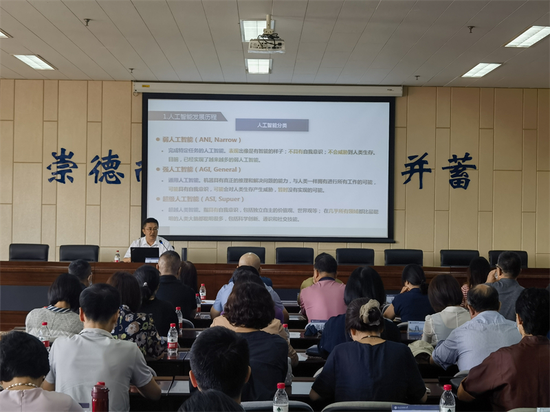 为落实学校2023年干部教育培训计划,提升处级领导干部知识素养,9月13日上午,党委组织部(党校)举办处级领导干部培训,邀请学校软件学院、大数据产业学院副院长朱毅副教授,以“人工智能促进教育变革创新”为主题,围绕人工智能相关知识作前沿科技讲座。