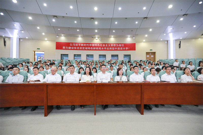9月18日上午,学校学习贯彻习近平新时代中国特色社会主义思想主题教育总结会在图书馆报告厅举行。会议深入贯彻落实习近平总书记关于主题教育系列重要讲话和重要指示批示精神,认真学习贯彻习近平总书记在新时代推动东北全面振兴座谈会上的重要讲话精神,全面贯彻中央和省委主题教育第一批总结暨第二批部署会议精神,总结学校主题教育开展情况,并就进一步巩固拓展主题教育成果作出初步安排。校党委书记王伟辰作总结报告,校党委副书记、校长刘宏主持会议。校党委常委,全体中层干部、组织员、党支部书记参加会议。