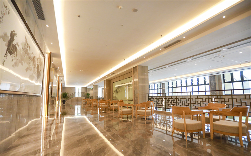 国际文化交流中心主体6层,总建筑面积达到17000平方米,楼内设有客房210间,其中标准间89间,商务间11间,套房2间,单人间108间,可满足300人入住;设有可同时容纳450人就餐的中、西餐厅,可容纳30-70人的会议室5个,200人报告厅1个,多功能厅1个。