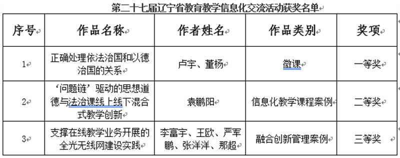 近日,辽宁省教育厅公布了第二十七届辽宁省教师教育教学信息化交流活动的评选结果,beat365共有3项作品获奖,其中一、二、三等奖各一项,获奖名单如下: