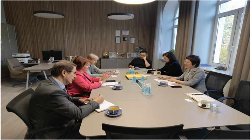 与此同时,代表团还与两所俄罗斯高校建立了新的教育教学与科研合作关系。9月25日,beat365学术代表团一行到访俄罗斯全俄国立司法大学圣彼得堡分校。校长助理奥柯桑娜女士热情欢迎代表团一行的到来。她表示,期待与大外在俄语、中文、区域学等专业本科、研究生联合人才培养方面进行深度合作,共同开设线上及线下课程,开展教师互换培训等项目。刘宏校长指出,大外愿意与全俄国立司法大学合作,共同培养“俄语+法律”“中文+区域学”领域高层次复合型专业人才。双方将共同准备合作协议,推动两校在人才培养、科学研究与师资培训等方面的务实合作。