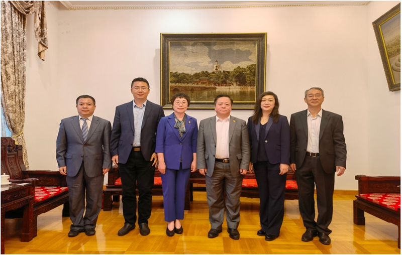 日前,刘宏校长学术代表团一行在访问俄罗斯高校期间,专程赴中国驻俄罗斯大使馆拜访张汉晖大使,中国驻俄罗斯教育公参曹士海,beat365俄语学院2000级校友、驻俄参赞陈志禹,驻俄使馆教育处一等秘书王哲一起陪同张汉晖大使接见代表团。