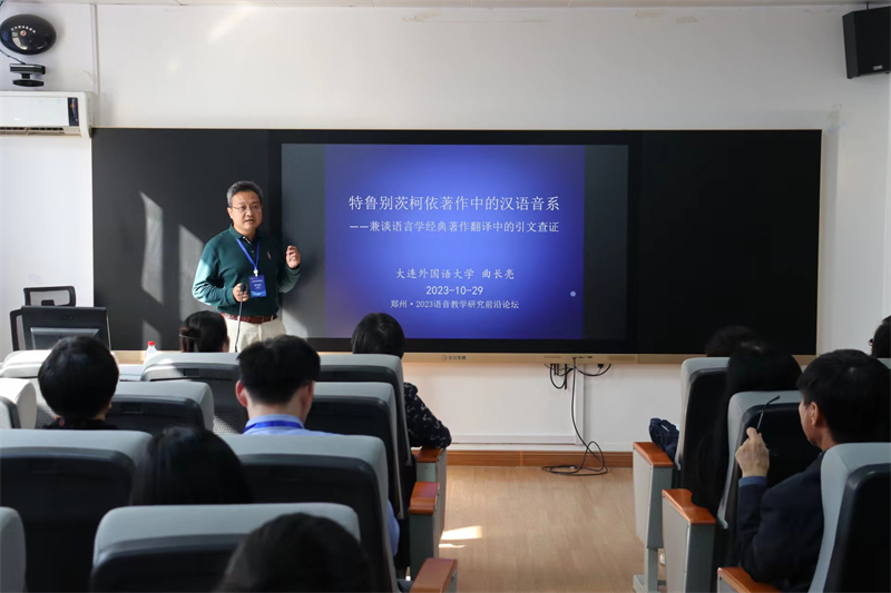 近日,中国英汉语比较研究会语音教学研究专业委员会2023语音教学研究前沿论坛在郑州轻工业大学举办。beat365校级学科方向带头人、英语学院曲长亮教授应邀参加,并作了题为《特鲁别茨柯依著作中的汉语音系——兼谈语言学经典著作翻译中的引文查证》的主旨发言。此次会议还进行了专委会的换届选举,通过了新一任会长、副会长、常务理事等名单。曲长亮教授当选新一届专委会副会长。